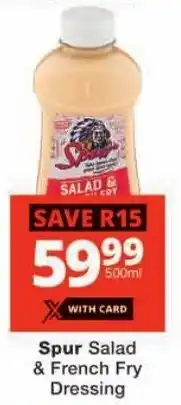 | Spur Salad & French Fry Dressing 500 ml | Checkers | R 59,99 | Save R15 | 08 December 2025 | 28 December 2025 | ||