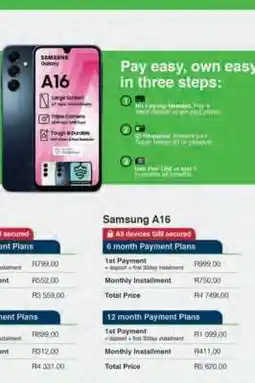 | 1 | Samsung A16 | Pick n Pay | R 5 620,00 | 26 January 2026 | 01 March 2026 | View offer | |||