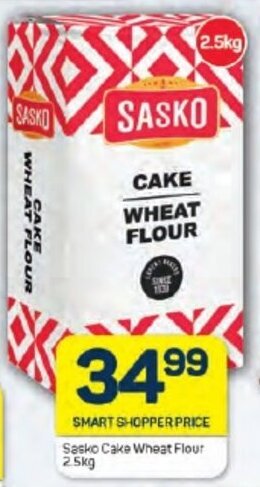 | Sasko Cake Wheat Flour 2.5kg | Pick n Pay | R 34,99 | 08 November 2023 | 23 November 2023 | |||