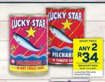 Pick n Pay Lucky Star Pilchards Assorted 400g offerLucky Star Pilchards Assorted 400gPick n PayR 34,00Any 2 for 3419 July 202125 July 2021