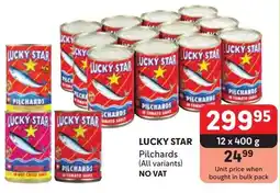 Pick n Pay Lucky Star Pilchards in Sauce Assorted 400g offerLucky Star Pilchards in Sauce Assorted 400gPick n PayR 52,0025 March 202407 April 2024