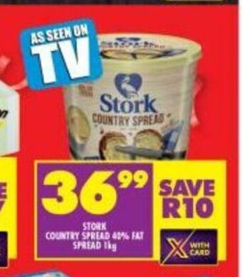 | Stork Country Spread 40% Fat Spread 1kg | Shoprite | R 39,99 | 25 July 2022 | 07 August 2022 | |||