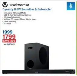 1Incredible Connection Volkano Dynasty 120W Soundbar & Subwoofer offerVolkano Dynasty 120W Soundbar & SubwooferIncredible ConnectionR 1 999,00R 1 799,00Save 20029 December 202502 February 2026 View offer