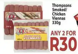 2Supa Store Thompsons Smoked/ Chicken Viennas offerThompsons Smoked/ Chicken Viennas 2 x 330 gSupa StoreR 30,0012 December 202508 January 2026 View offer