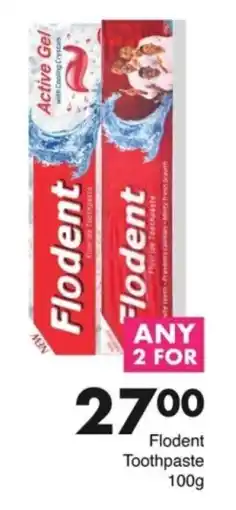 | 1 | Flodent Toothpaste 2 x 100 g | Save Hyper | R 27,00 | 29 December 2025 | 11 January 2026 | View offer | |||