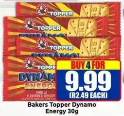 | 2 | Bakers Topper Dynamo Energy 4 x 30 g | Three Star Cash and Carry | R 9,99 | 12 December 2025 | 08 January 2026 | View offer | |||