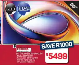Pick n Pay Hypermarket Toshiba 55 QLED TV offerToshiba 55 QLED TVPick n Pay HypermarketR 5 499,0001 December 202528 December 2025
