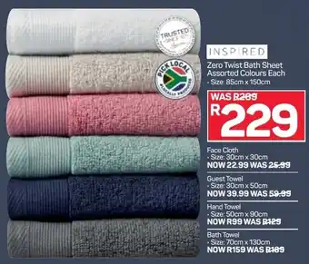 | Inspired Zero Twist Bath Towel 70cm x 130cm | Pick n Pay | R 159,00 | 20 September 2021 | 03 October 2021 | |||