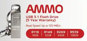 | Ammo USB 3.1 Flash Drive 128GB | Computer Mania | R 539,00 | 02 August 2021 | 31 August 2021 | |||