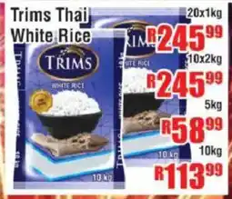 | 1 | Trims Thai White Rice 5 kg | Devland Cash And Carry | R 58,99 | 31 December 2025 | 04 February 2026 | View offer | |||