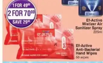 | Ef-Active Anti-Bacterial Hand Wipes 50 Wipes | Dis-Chem | R 70,00 | 2 for 70 | 15 July 2021 | 15 August 2021 | ||