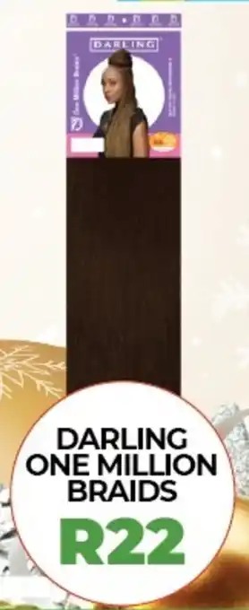 This special is available in various stores, view all products to get the cheapest Darling one million braids. If you'd like to find out whether this product has a bigger discount in another store, check the category 'Wholesale'. You may also find these specials interesting: Darling one million braids, Darling One Million Braids # 1 Black-1's & Darling One Million Braid.