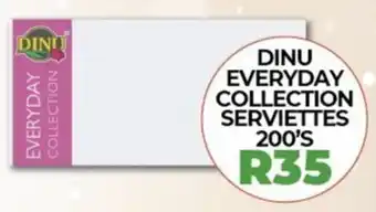 This special is available in various stores, view all products to get the cheapest Dinu everyday collection serviettes. If you'd like to find out whether this product has a bigger discount in another store, check the category 'Wholesale'. You may also find these specials interesting: Serviettes, Everyday Chakalaka & OK White Serviettes.