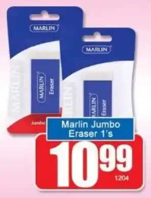 This special is available in various stores, view all products to get the cheapest Marlin Jumbo Eraser. If you'd like to find out whether this product has a bigger discount in another store, check the category 'Grocery stores'. You may also find these specials interesting: Marlin Eraser, Marlin Eraser & Marlin Eraser.