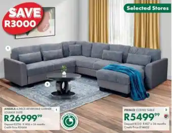 This Angela reversible corner lounge suite is available in the following branches based on your set location: