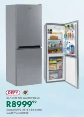 This special is available in various stores, view all products to get the cheapest Defy no water fridge. If you'd like to find out whether this product has a bigger discount in another store, check the category 'Kitchen & Bathroom'. You may also find these specials interesting: Defy water dispenser metallic fridge, Defy Fridge Freezer with Water Dispenser & Defy 348L Bottom Freezer/Fridge With Water Dispenser DAC645 (796170).