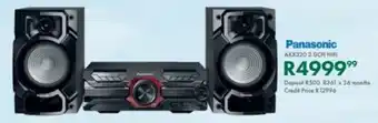 This Panasonic AKX320 2.0ch HiFi is currently available as part of a special promotion at Beares. Be sure to check the current promotions filled with competitive prices and deals. You can order Panasonic AKX320 2.0ch HiFi online via Beares website or get it at the best available price. Cataloguespecials.co.za collects the most relevant Panasonic AKX320 2.0ch HiFi offers and specials for you. Want to be notified first? Click the bell icon to receive a free alert when the product is part of a new promotion or available again.