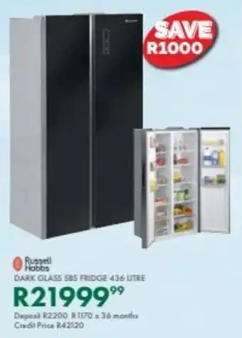 Now on special at Beares: Russell hobbs dark glass sbs fridge ✅ Valid from 5-01 to 22-02.