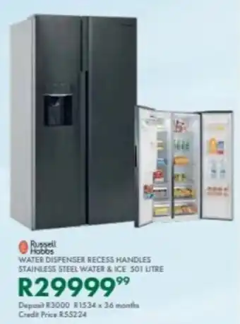 Now on special at Beares: Russell hobbs water dispenser recess handles stainless steel water & ice ✅ Valid from 5-01 to 22-02.