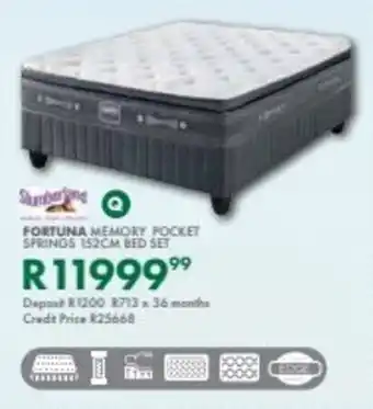 Slumberland fortuna memory pocket springs 152cm bed set promotion at Beares