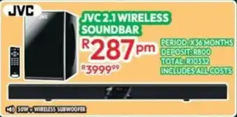 The JVC 2.1 wireless soundbar is now available with a discount at Best Home And Electric. On this page, you’ll find everything about the current price, promotion conditions, and how long the offer is valid. Also explore other offers and promotions for JVC 2.1 wireless soundbar to make a smart and cost-effective choice.