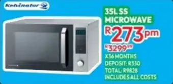 This special is available in various stores, view all products to get the cheapest Kelvinator ss microwave. If you'd like to find out whether this product has a bigger discount in another store, check the category 'Home furniture'. You may also find these specials interesting: Kelvinator microwave, Kelvinator ss combi fridge & Kelvinator ss top loader.