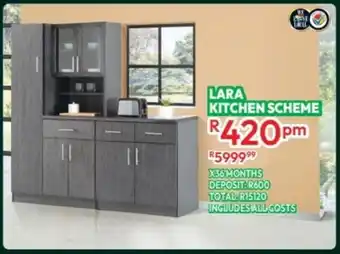 This special is available in various stores, view all products to get the cheapest Lara kitchen scheme. If you'd like to find out whether this product has a bigger discount in another store, check the category 'Home furniture'. You may also find these specials interesting: Oakdale kitchen scheme, Surrey kitchen scheme & Bianca kitchen scheme.