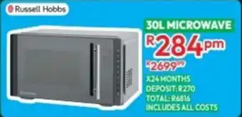 This special is available in various stores, view all products to get the cheapest Russell Hobbs Microwave. If you'd like to find out whether this product has a bigger discount in another store, check the category 'Home furniture'. You may also find these specials interesting: Russell Hobbs Microwave Oven, Russell Hobbs Microwave Black & Russell Hobbs 60L Electronic Microwave RHEM60L.