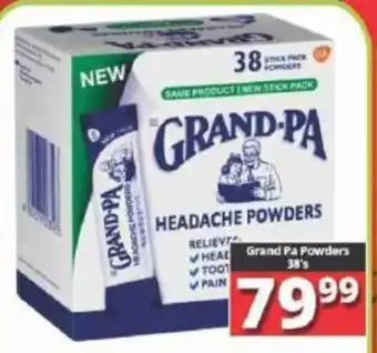 Big Save offers a wide collection of products, besides the Grand Pa Powders. Keep an eye on the weekly Big Save catalogue to find the best specials and promotions. Besides Grand Pa Powders, you can also find the following offers: Grand-Pa Headache Powders, Grand-Pa Headache Powders & Grand-Pa Headache Powders.