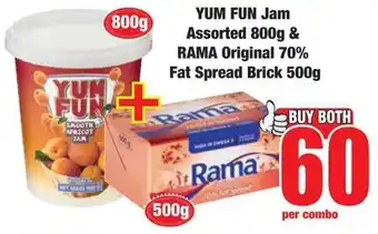 YUM FUN Jam Assorted 800g & RAMA Original 70% Fat Spread Brick 500g