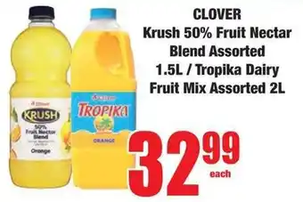 CLOVER Krush 50% Fruit Nectar Blend Assorted/ Tropika Dairy Fruit Mix Assorted promotion at Boxer Superstores