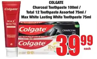COLGATE Charcoal Toothpaste/ Total 12 Toothpaste Assorted/ Max White Lasting White Toothpaste offers and online specials, directly from Boxer Superstores