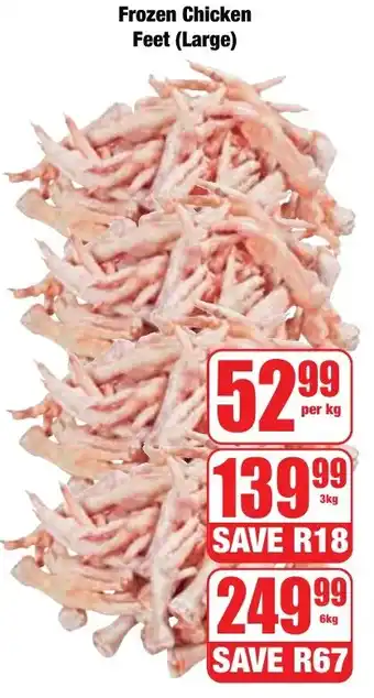 This special is available in various stores, view all products to get the cheapest Frozen Chicken Feet. If you'd like to find out whether this product has a bigger discount in another store, check the category 'Grocery stores'. You may also find these specials interesting: Frozen Chicken Feet, Frozen Chicken Feet (Large) & GOLDI FROZEN CHICKEN HEADS & FEET 1kg.
