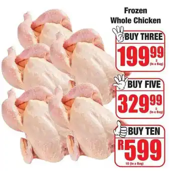 This special is available in various stores, view all products to get the cheapest Frozen Whole Chicken. If you'd like to find out whether this product has a bigger discount in another store, check the category 'Grocery stores'. You may also find these specials interesting: Frozen Whole Chicken, Frozen Whole Chicken Leg Quarters & Frozen Whole Chicken Leg Quarters.