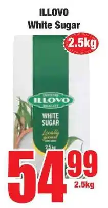 This special is available in various stores, view all products to get the cheapest ILLOVO White Sugar. If you'd like to find out whether this product has a bigger discount in another store, check the category 'Grocery stores'. You may also find these specials interesting: Huletts White Sugar, OK White Sugar & Jumbo's White Sugar.