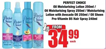 PERFECT CHOICE Oil Moisturising Lotion/ Moisturising Lotion with Avocado Oil/ Oil Sheen Pro-Vitamin B5 Hair Spray promotion at Boxer Superstores