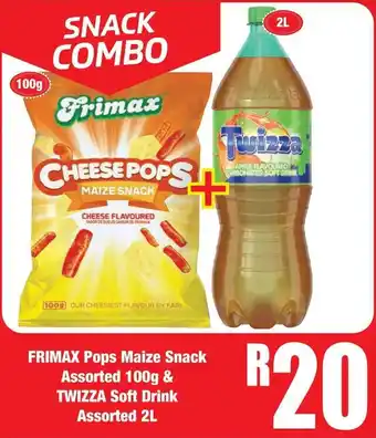 FRIMAX Pops Maize Snack Assorted 100g & TWIZZA Soft Drink Assorted 2L