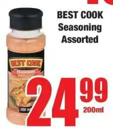 This special is available in various stores, view all products to get the cheapest BEST COOK Seasoning Assorted. If you'd like to find out whether this product has a bigger discount in another store, check the category 'Grocery stores'. You may also find these specials interesting: BEST COOK Seasoning Assorted, BEST COOK Seasoning Shaker Assorted & Frozen Whole Chicken Leg Quarters 10kg, BEST COOK Seasoning Assorted 150g & 200ml.