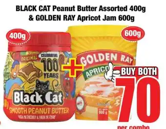 BLACK CAT Peanut Butter Assorted 400g & GOLDEN RAY Apricot Jam 600g promotion at Boxer