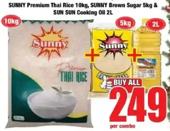 SUNNY Premium Thai Rice 10kg, SUNNY Brown Sugar 5kg & SUN SUN Cooking Oil 2L