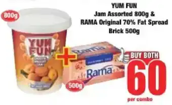 YUM FUN Jam Assorted 800g & RAMA Original 70% Fat Spread Brick 500g