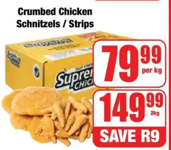 This special is available in various stores, view all products to get the cheapest Crumbed Chicken Schnitzels / Strips. If you'd like to find out whether this product has a bigger discount in another store, check the category 'Grocery stores'. You may also find these specials interesting: Crumbed Chicken Schnitzels/ Strips, Rainbow Crumbed Chicken Schnitzels/ Strips & Supreme Chicken Crumbed Schnitzels or Strips.