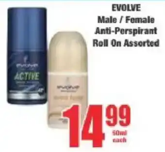 Now on special at Boxer: EVOLVE Male/ Female Anti-Perspirant Roll On Assorted ✅ Valid from 18-01 to 4-02.