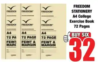 FREEDOM STATIONERY A4 College Exercise Book 72 Pages Offer at Boxer