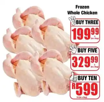 This special is available in various stores, view all products to get the cheapest Frozen Whole Chicken. If you'd like to find out whether this product has a bigger discount in another store, check the category 'Grocery stores'. You may also find these specials interesting: Frozen Whole Chicken, Frozen Whole Chicken Leg Quarters & Frozen Whole Chicken Leg Quarters.