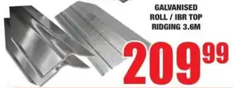 This special is available in various stores, view all products to get the cheapest Galvanised roll/ ibr top ridging. If you'd like to find out whether this product has a bigger discount in another store, check the category 'Grocery stores'. You may also find these specials interesting: Galvanised roll/ ibr top ridging, Roll Top Ridging & IBR.