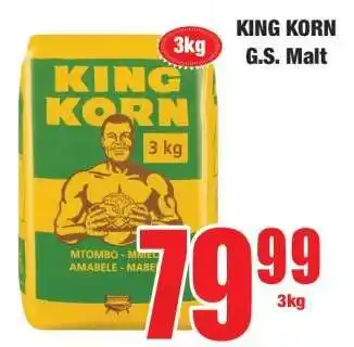 This special is available in various stores, view all products to get the cheapest KING KORN G.S Malt. If you'd like to find out whether this product has a bigger discount in another store, check the category 'Grocery stores'. You may also find these specials interesting: KING KORN G.S. Malt, King Korn Malt & King Korn Sorghum Malt.