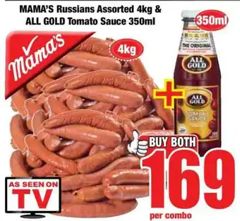 MAMA'S Russians Assorted 4kg & ALL GOLD Tomato Sauce 350ml offers and online specials, directly from Boxer