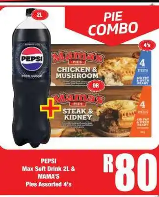 PEPSI Max Soft Drink 2L & MAMA’S Pies Assorted 4’s