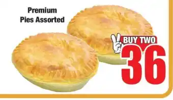 This special is available in various stores, view all products to get the cheapest Premium Pies Assorted. If you'd like to find out whether this product has a bigger discount in another store, check the category 'Grocery stores'. You may also find these specials interesting: Pies Assorted, Value Pies Assorted & Assorted Pies + a Pepsi.